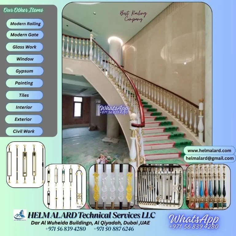 Description Railing Materials and Designs Aluminium Baluster, Stainless Steel Material,European Style Brass Décor, Luxury Interior Baluster, Classical Golden Aluminium Baluster, Modern Aluminium Alloy Stair Railing Railing Manufacturers and Services Railing Smearcase handrail manufacturer in Ajman, Sharjah, Dubai, Al Ain, RAK, Ras al- khaima, abudhabi, Umm al-quwainfujarah, uae, Handrail fabrication in Ajman, Sharjah, Dubai, Al Ain, RAK, Ras […]